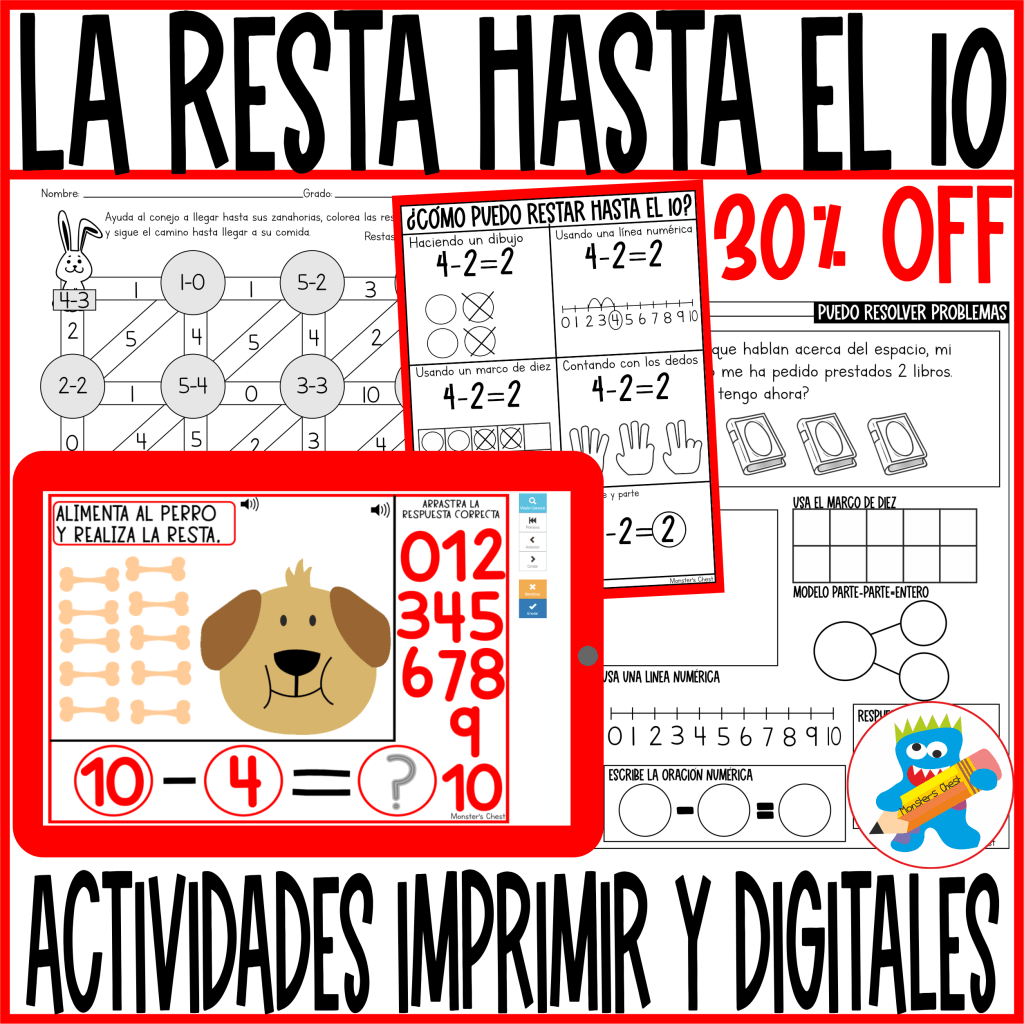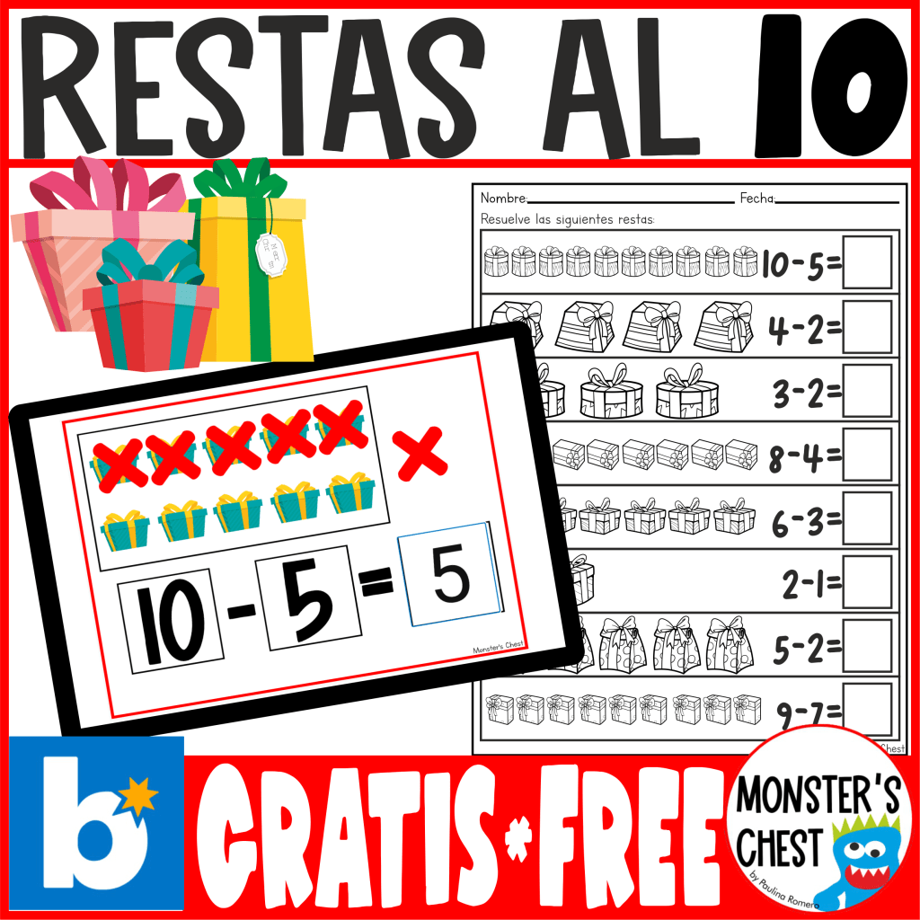 Te dejo por aquí algunos de los Recursos para trabajar la resta en mi tienda de TPT, uno es gratis, sigue el enlace y descárgalo. ⬇️