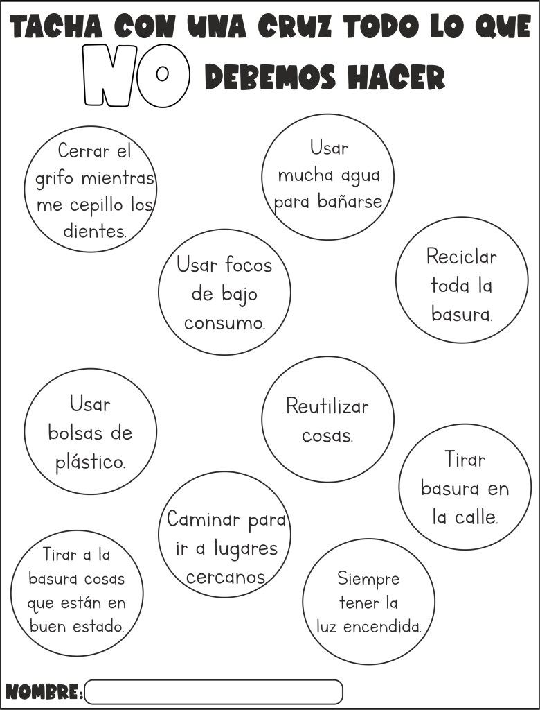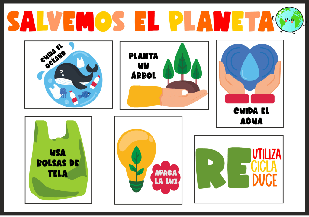 - Haz un reto entre tus estudiantes para llevar a cabo pequeñas acciones para cuidar el planeta, apagar las luces, caminar en vez de usar el carro, cerrar la llave del agua, pequeñas acciones que pueden hacer la diferencia.