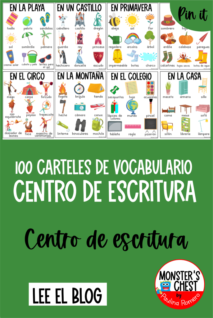 En esta entrada te explico uno de mis recursos favoritos para aquellos estudiantes que todavía necesitan mucho apoyo a la hora de escribir. Es una pared de vocabulario o un centro de escritura que consiste en posters de vocabulario separados en temas.