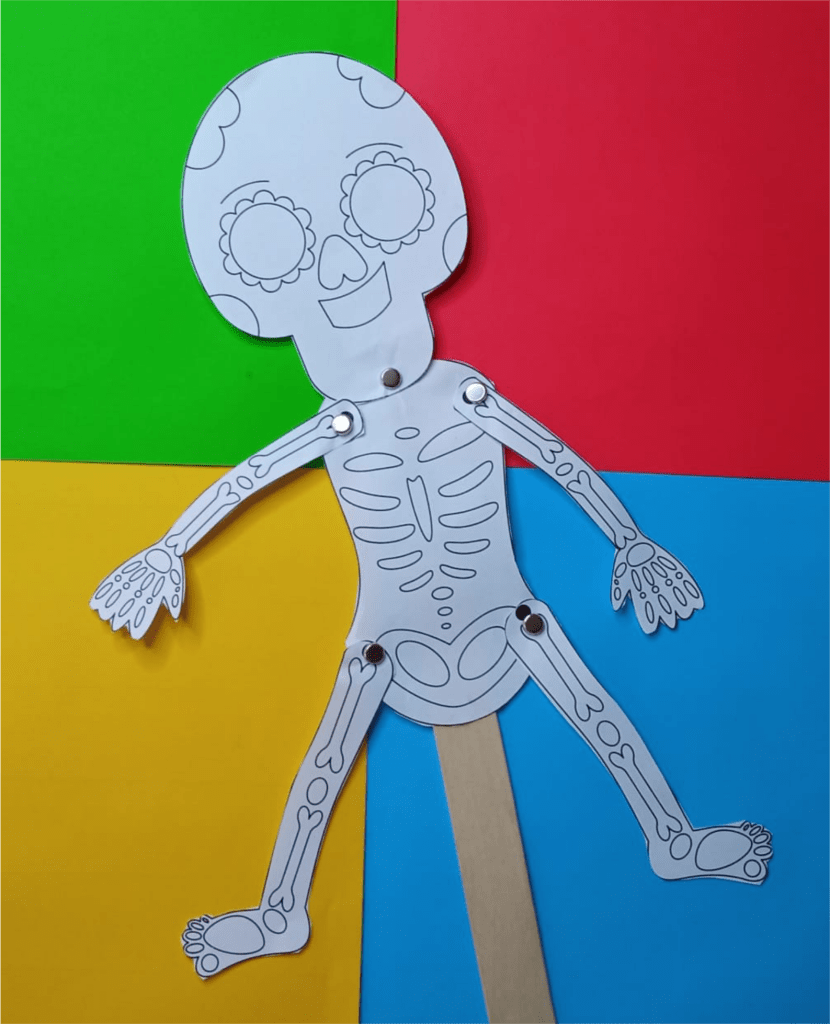 4. Hacer una marioneta de calaverita, en el recurso nuevo que agregue a mi biblioteca también encontrarás la plantilla para hacer una marioneta de papel. Suscríbete a mi lista de correos y recibe la contraseña para acceder a la biblioteca de recursos gratuitos de esta página AQUÍ.