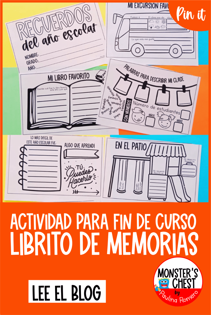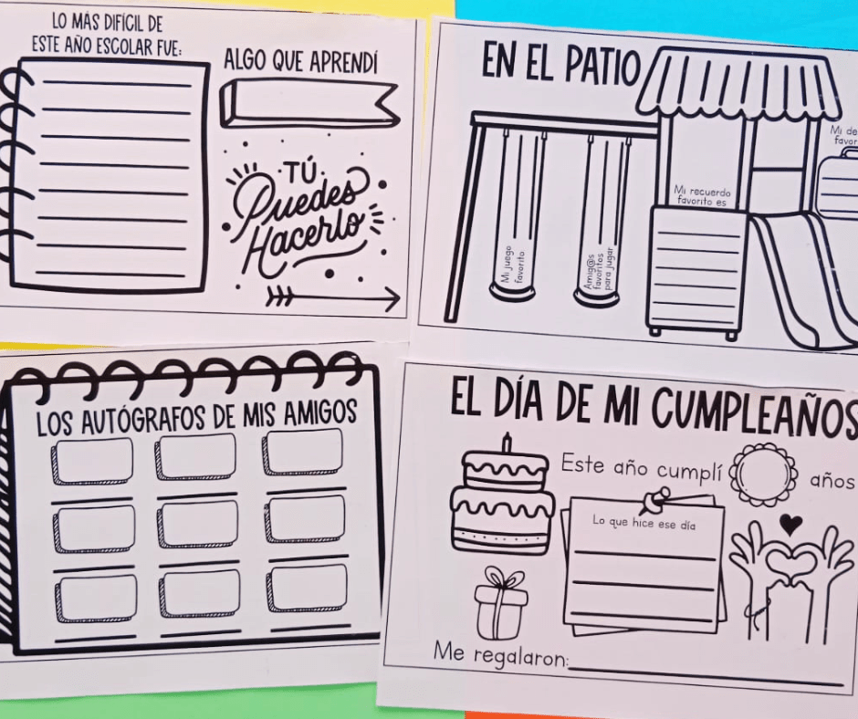 Hace poco hice un recurso en mi tienda que es un librito para imprimir, incluye una portada y 12 páginas interiores para hacer un cuaderno de recuerdos para tus alumnos. ¿Quieres revisarlo? Puedes hacerlo AQUÍ.