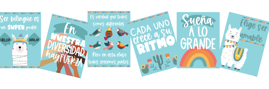 3.- Decora tu clase con estos posters bilingües, incluye 6 versiones, están listos para imprimir y seguro que alegran tu clase. Incluyen versiones en inglés y en español. Puedes descargarlos AQUÍ.