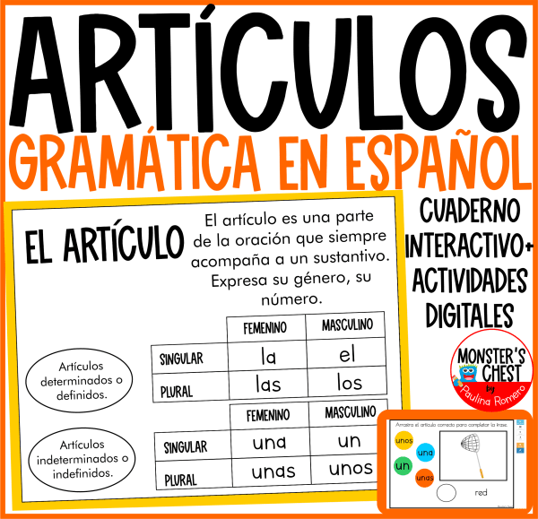 En mi tienda puedes encontrar un recurso para enseñar los artículos con hojas de trabajo, carteles y actividades digitales para que les quede claro cómo usarlos y aprender a diferenciarlos.