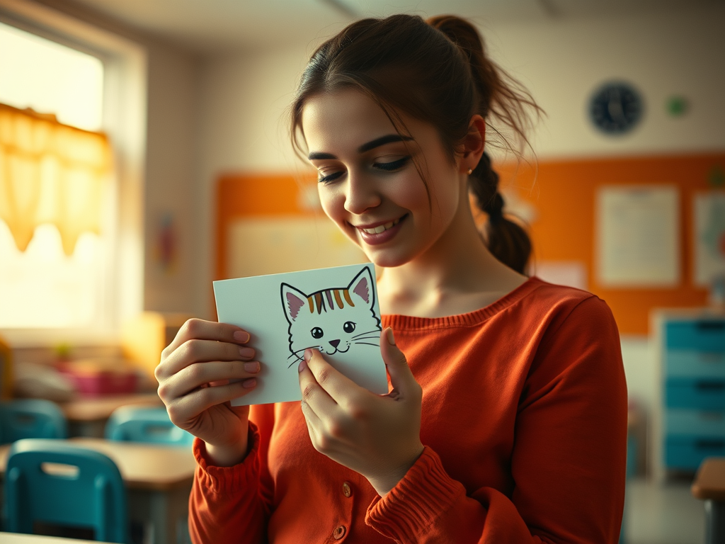 1. Introducción visual y tangible Utiliza recursos visuales como tarjetas de palabras con imágenes para ayudar a los niños a asociar artículos con sustantivos. Por ejemplo, muestra una tarjeta con la imagen de un gato y juega a que te digan el artículo que corresponde.